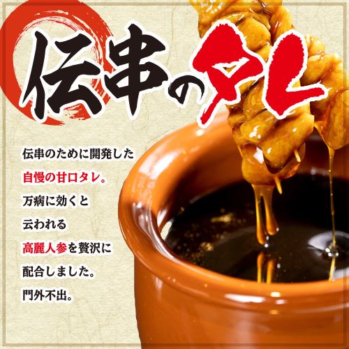 일본 제일의 파리모치 닭피꼬치에 인삼 소스가 긁힌 전구.거기에, 야미츠키 『덴꼬 향신료』를 듬뿍 넣은 덴꼬는, 맛미배증! 덴꼬 향신료는, 각 테이블에 1개 있습니다.염분 0이므로, 마음까지 향신료를 뿌려 즐겨주세요!